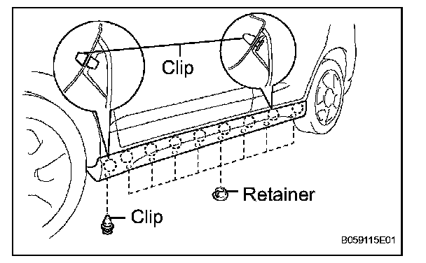 a. Using a clip remover, remove the 8 retainers and 9 clips.