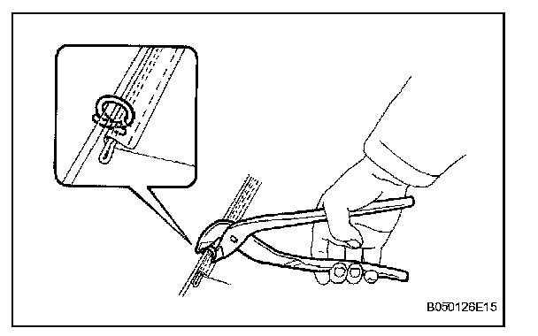 a. Using hog ring pliers, install the seat cushion cover to the seat cushion pad with new hog rings.
