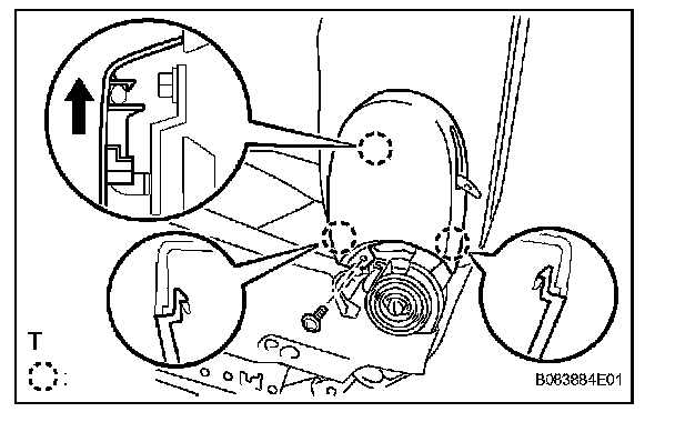 Disengage the 4 claws and remove the wire harness of the side airbag from the seatback shield.