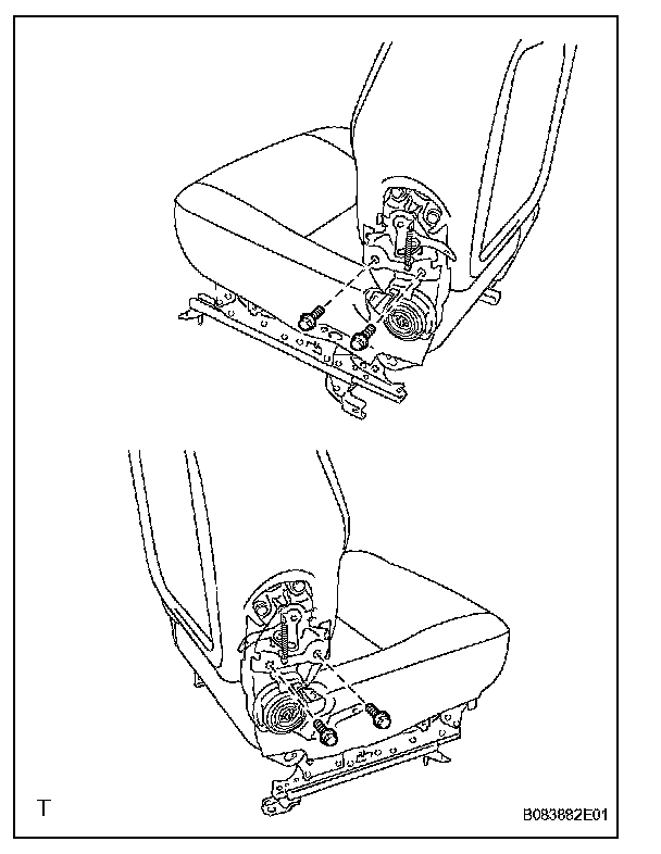 a. Remove the 2 bolts and seatback lock (together with front seat hinge cover).