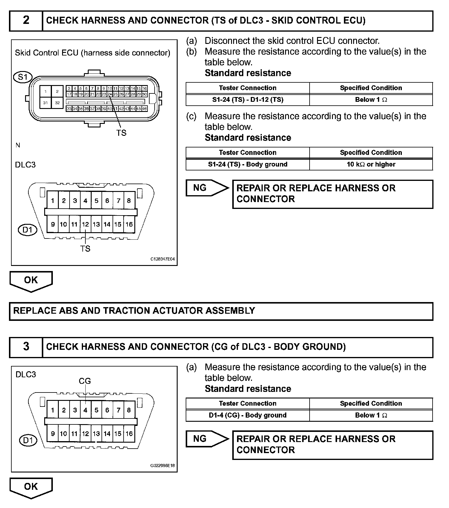 Transition to the sensor check mode can be performed by connecting terminals TS and CG of the DLC3 and turning the ignition switch from off to the ON position.