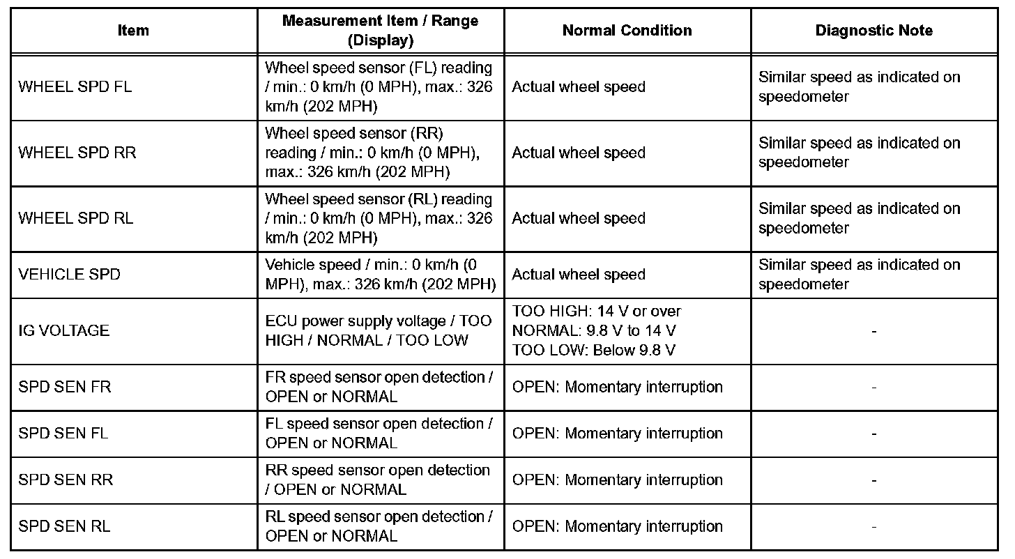 DATA LISTHINT: According to the DATA LIST displayed on the intelligent tester, you can read the value and status of the switch, sensor, actuator and so on without parts removal. Reading the DATA LIST as the first step of troubleshooting is one of the methods to shorten labor time.