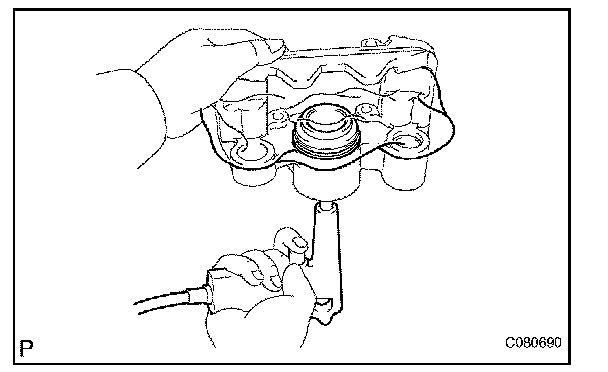 (b) Use compressed air to remove the piston from the disc brake cylinder.
