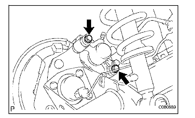 (a) Remove the union bolt and gasket from the disc brake cylinder, then disconnect the flexible hose from the disc brake cylinder.