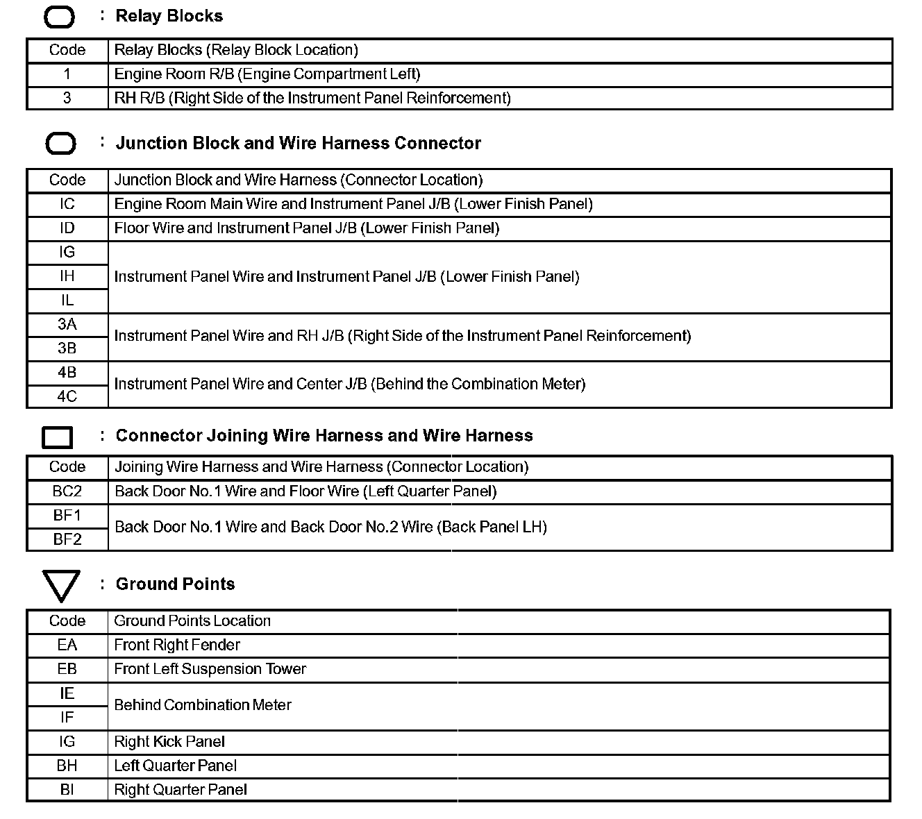 Locations: The locations of components, connectors, ground points, and splices referred to within these diagrams can be found at Vehicle Locations. Locations