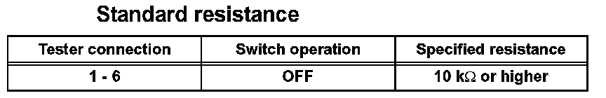 b. Connect the positive (+) lead from the battery to terminal 1 and the negative (-) lead to terminal 6, then check that the illumination comes on when switch operation is ON position.