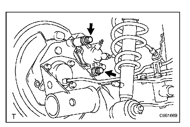 (a) Remove the 2 bolts, separate the rear disc brake caliper assembly LH.