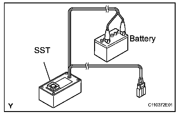 1. Connect the red clip of the SST to the battery positive (+) terminal and the black clip of the SST to the negative (-) terminal.