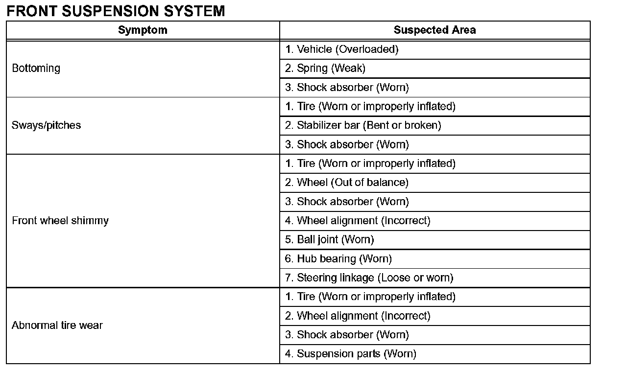 PROBLEM SYMPTOMS TABLEHINT: Use the table below to help determine the cause of the problem. The numbers indicate likely causes of the problem in descending order. Check each part in order. If necessary, repair or replace faulty parts.