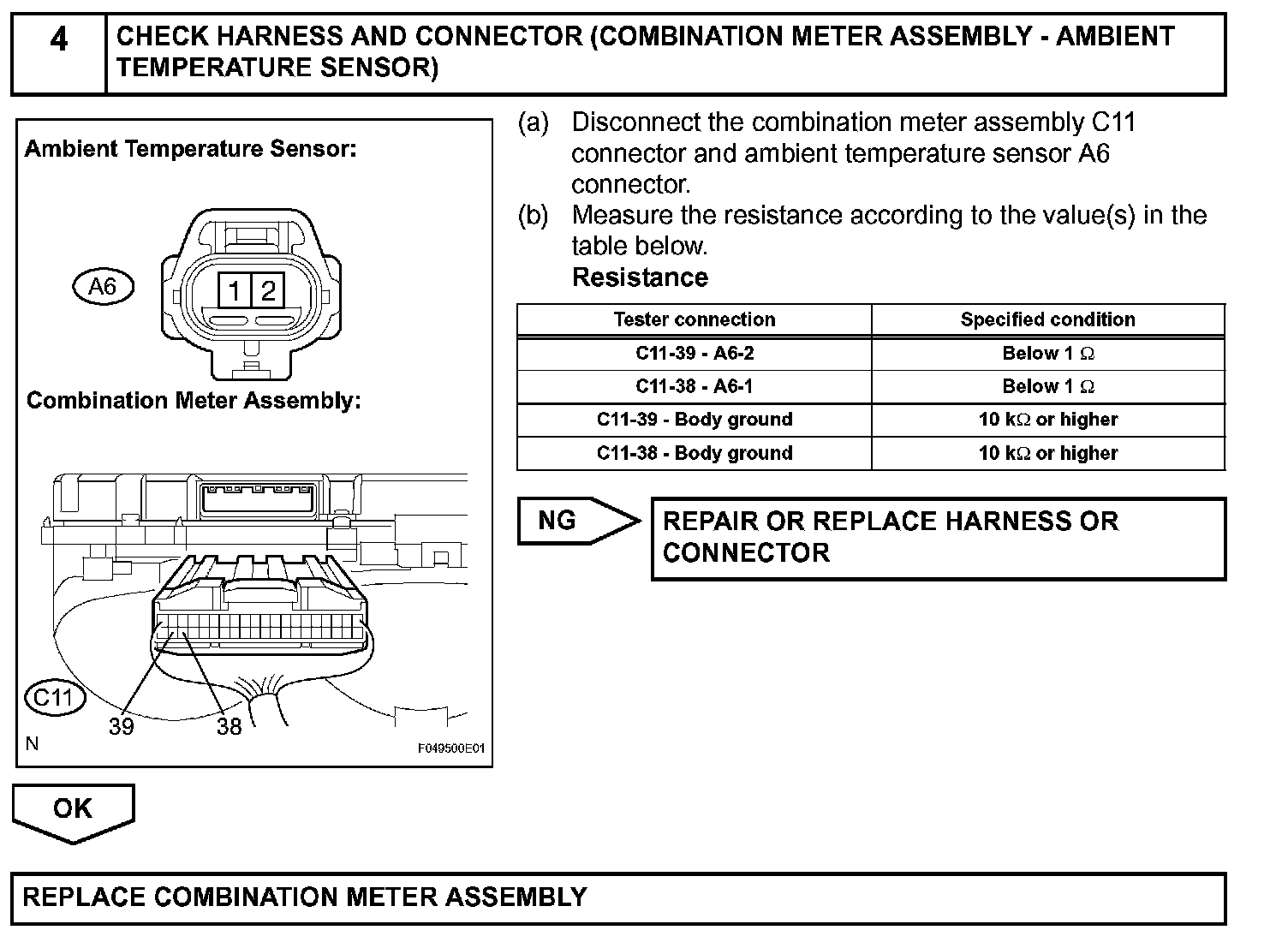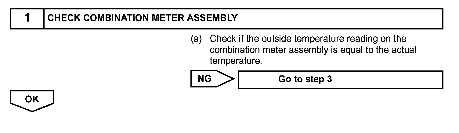 The ambient temperature sensor sends the outside temperature signal to the combination meter assembly. The combination meter assembly transmits the signal to the skid control ECU as a communication signal.