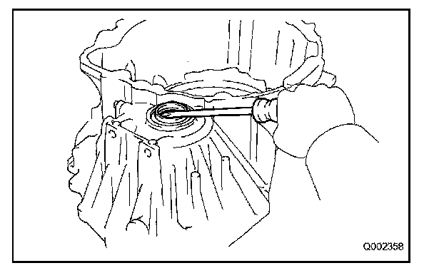 (a) Using a screwdriver, remove the transaxle case oil seal from the transaxle case.