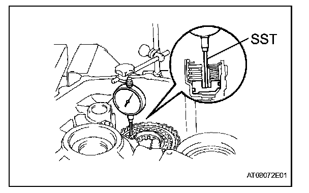 If the clearance is greater than maximum, replace the rear planetary gear assembly.