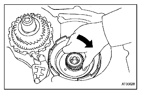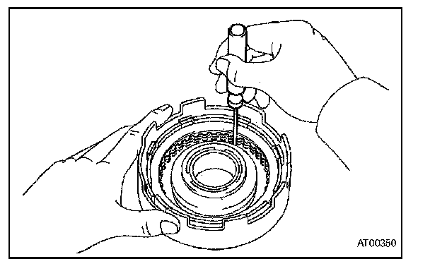 (d) Mesh the hub with the flukes of the direct clutch while turning the clutch drum or forward clutch.