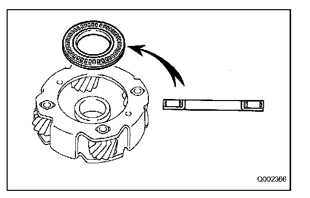 (c) Coat the thrust needle roller bearing and thrust bearing race with petroleum jelly and install them on to the tip of ring gear flange.