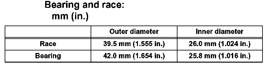 Used bearing preload (at starting) 0.4 to 0.7 Nm (4 to 7 kgf/cm, 3.5 to 6.2 in. lbs.)
