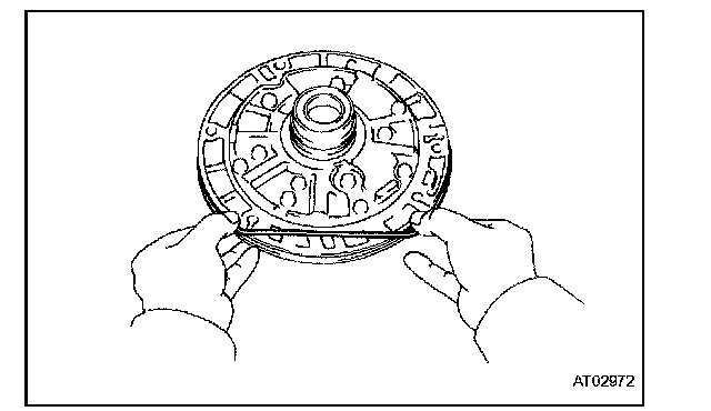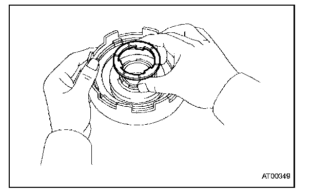 NOTICE: Do not push on the oil pump strongly, or the oil seal ring will stick to the direct clutch drum.