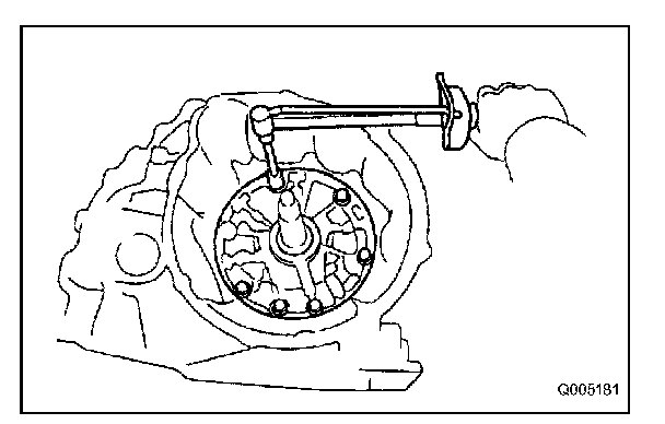 (b) Place the oil pump assembly through the input shaft, and align the bolt holes of the pump body with those of the transaxle case.