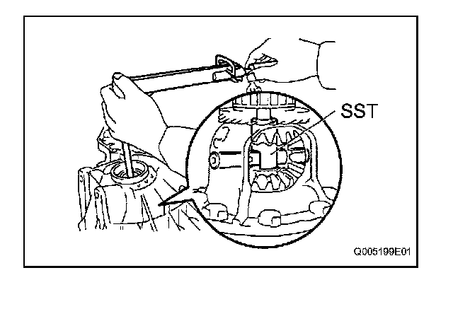 (b) Using SST and a torque wrench, measure the preload of the side bearing.