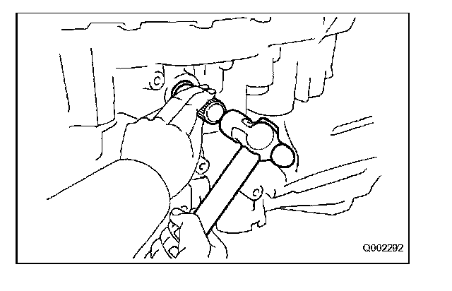 (a) Using a 14 mm (0.55 in.) socket wrench and hammer, drive in a new manual valve lever shaft oil seal.