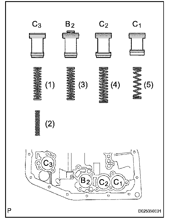 (b) Install the accumulator pistons and compression springs to the transaxle case as shown in the illustration.