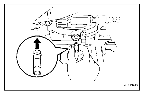 (a) Install the 2 transmission oil cleaner magnets to the automatic oil pan sub-assembly.