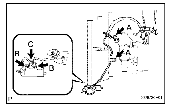 (a) Install the 2 wire harness clamps to the transaxle with the 2 bolts.