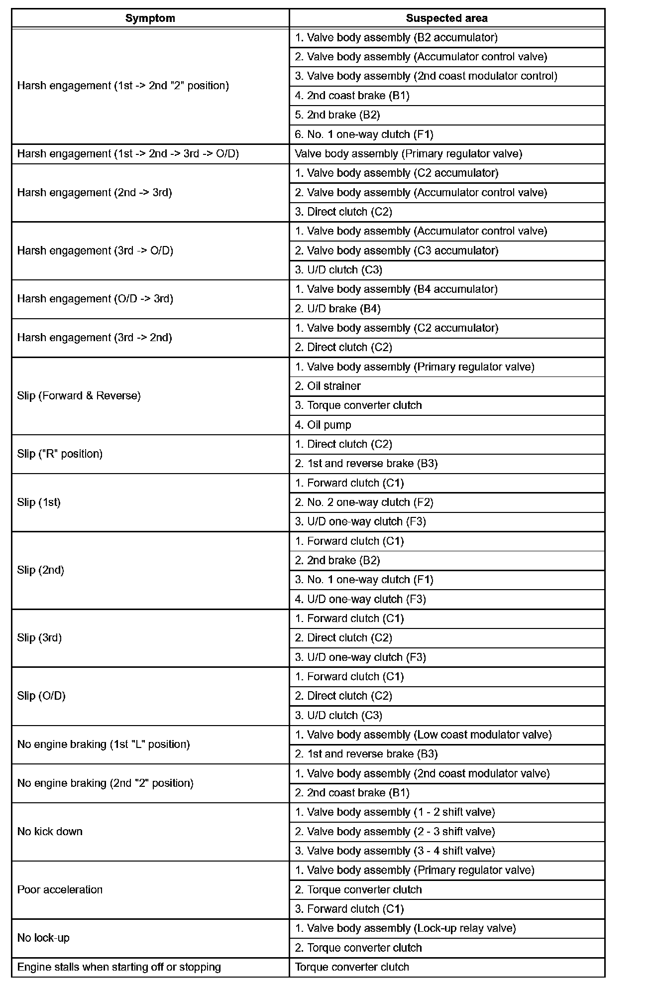 ^ If a normal code is displayed during the diagnostic trouble code check although the trouble still occurs, check the electrical circuits for each symptom in the order given in the charts below and proceed troubleshooting.