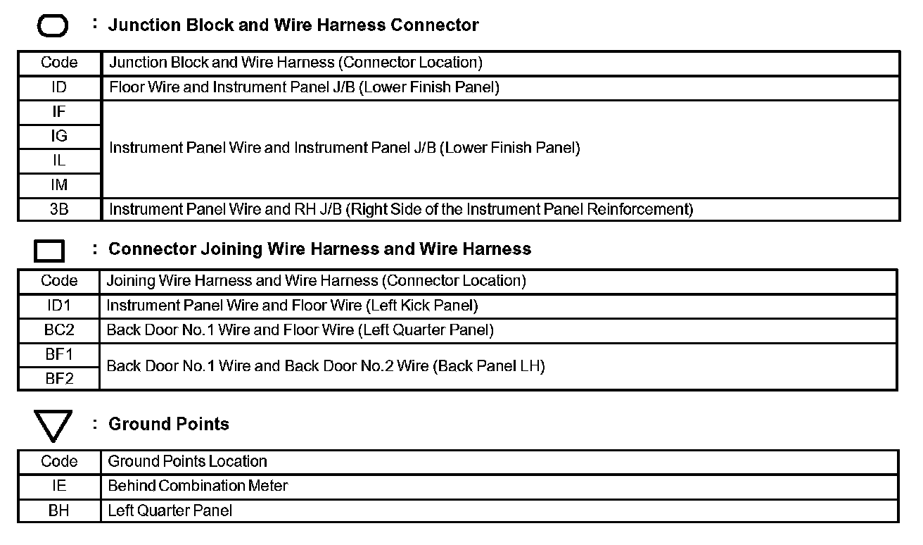 Locations: The locations of components, connectors, ground points, and splices referred to within these diagrams can be found at Vehicle Locations. Locations