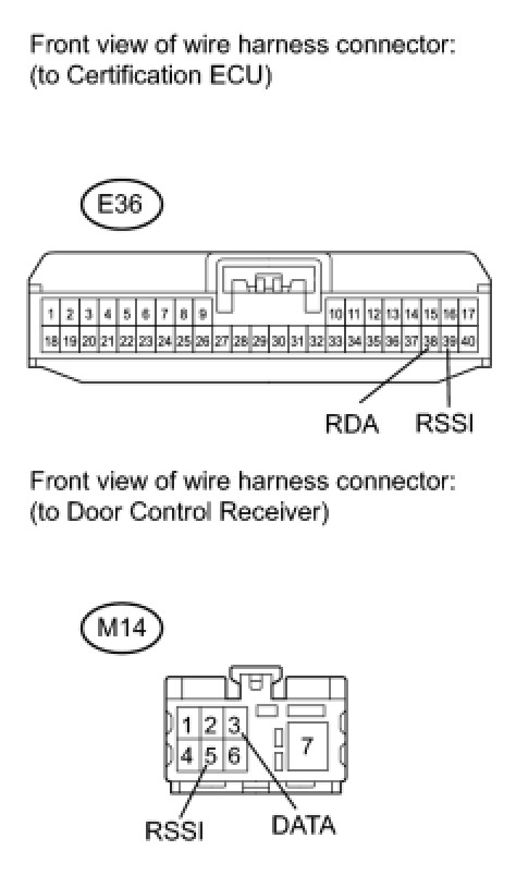 (a) Disconnect the E36 certification ECU connector and M14 door control receiver connector.