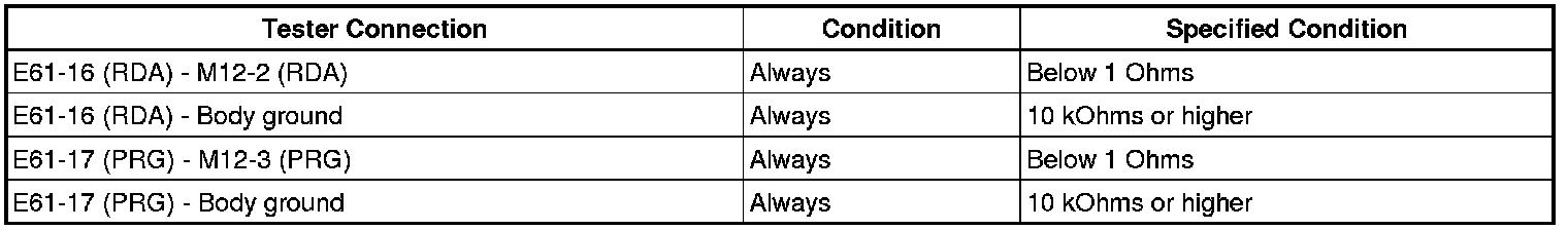 (a) Disconnect the E61 main body ECU connector and the M12 door control receiver connector.