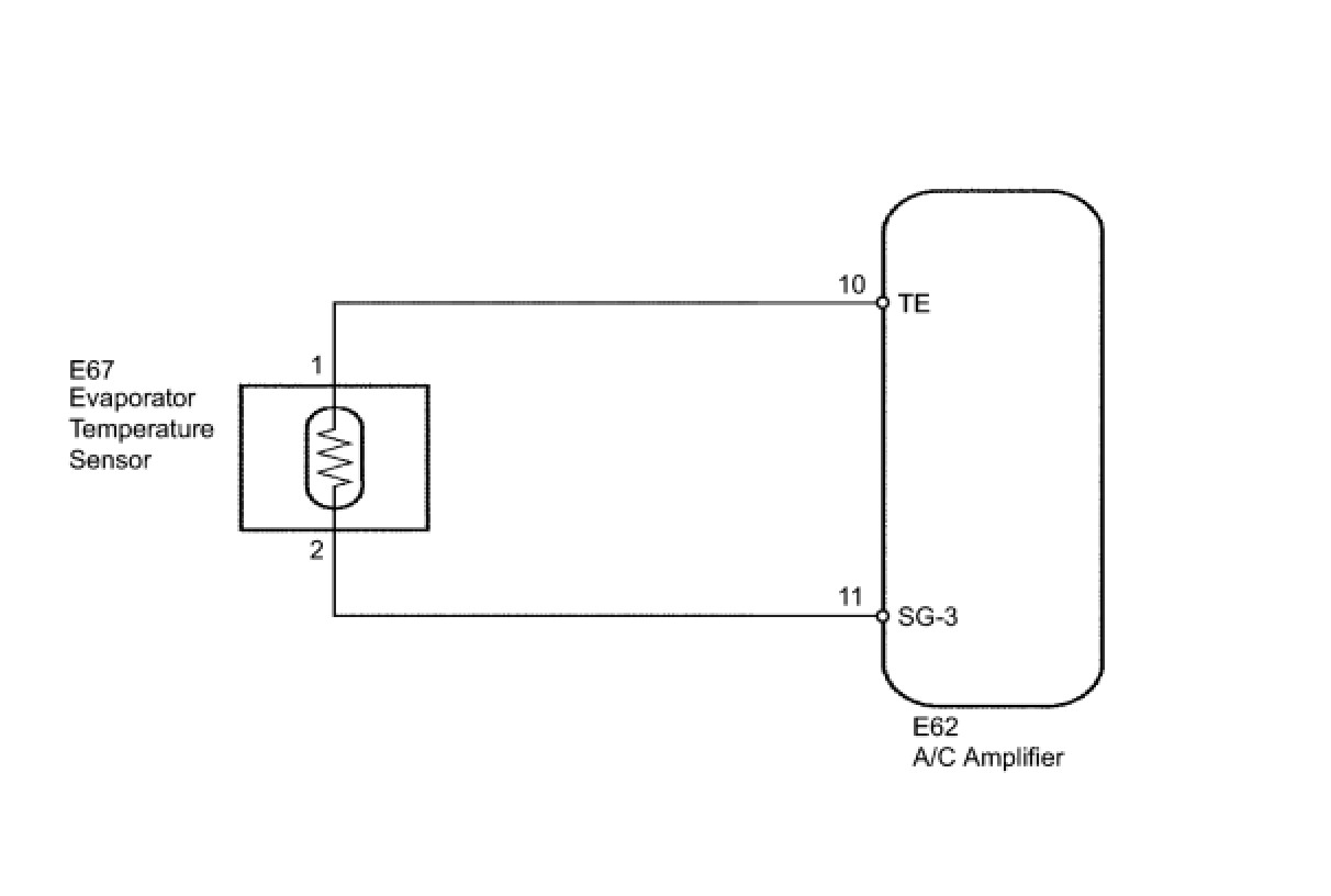 The A/C amplifier applies voltage (5 V) to the evaporator temperature sensor (A/C thermistor) and reads voltage changes as the resistance of the evaporator temperature sensor (A/C thermistor) changes. This sensor is used to prevent the evaporator from freezing.