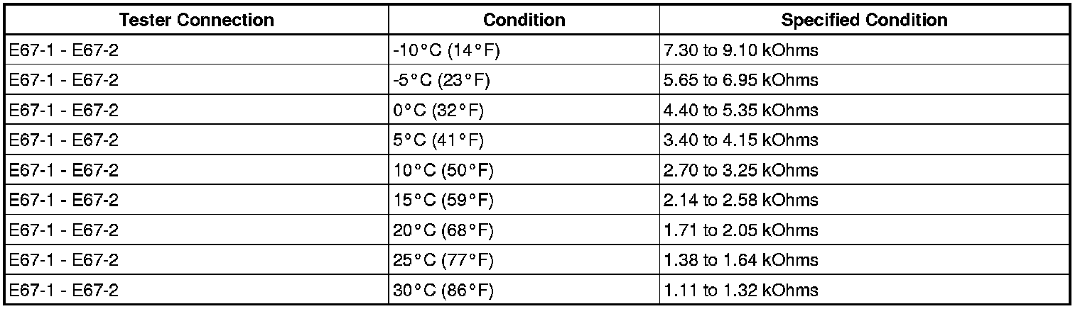 The evaporator temperature sensor (A/C thermistor) is installed on the evaporator in the air conditioning unit. It detects the temperature of the cooled air passed through the evaporator and its signal sent to the A/C amplifier is used to control the air conditioning. The resistance of the evaporator temperature sensor (A/C thermistor) changes in accordance with the temperature of the cooled air passed through the evaporator. As the temperature decreases, the resistance increases. As the temperature increases, the resistance decreases.