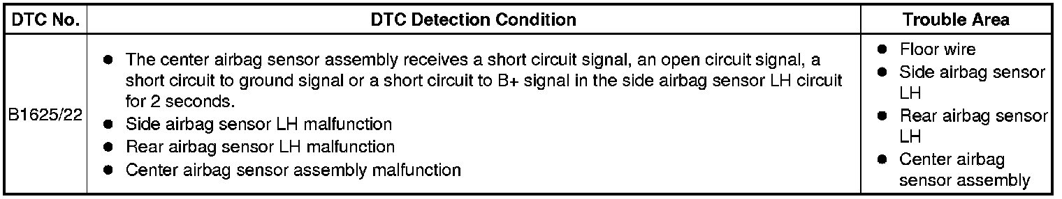 DTC B1625/22 - Side Airbag Sensor LH Circuit Malfunction