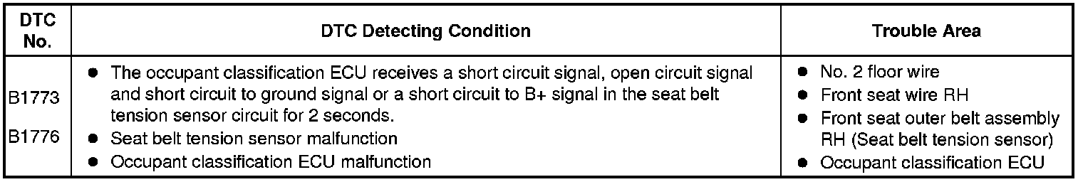 SUPPLEMENTAL RESTRAINT SYSTEMS: OCCUPANT CLASSIFICATION SYSTEM: B1773,B1776: Belt Tension Sensor Circuit Malfunction