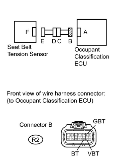 The seat belt tension sensor circuit consists of the occupant classification ECU and the seat belt tension sensor.