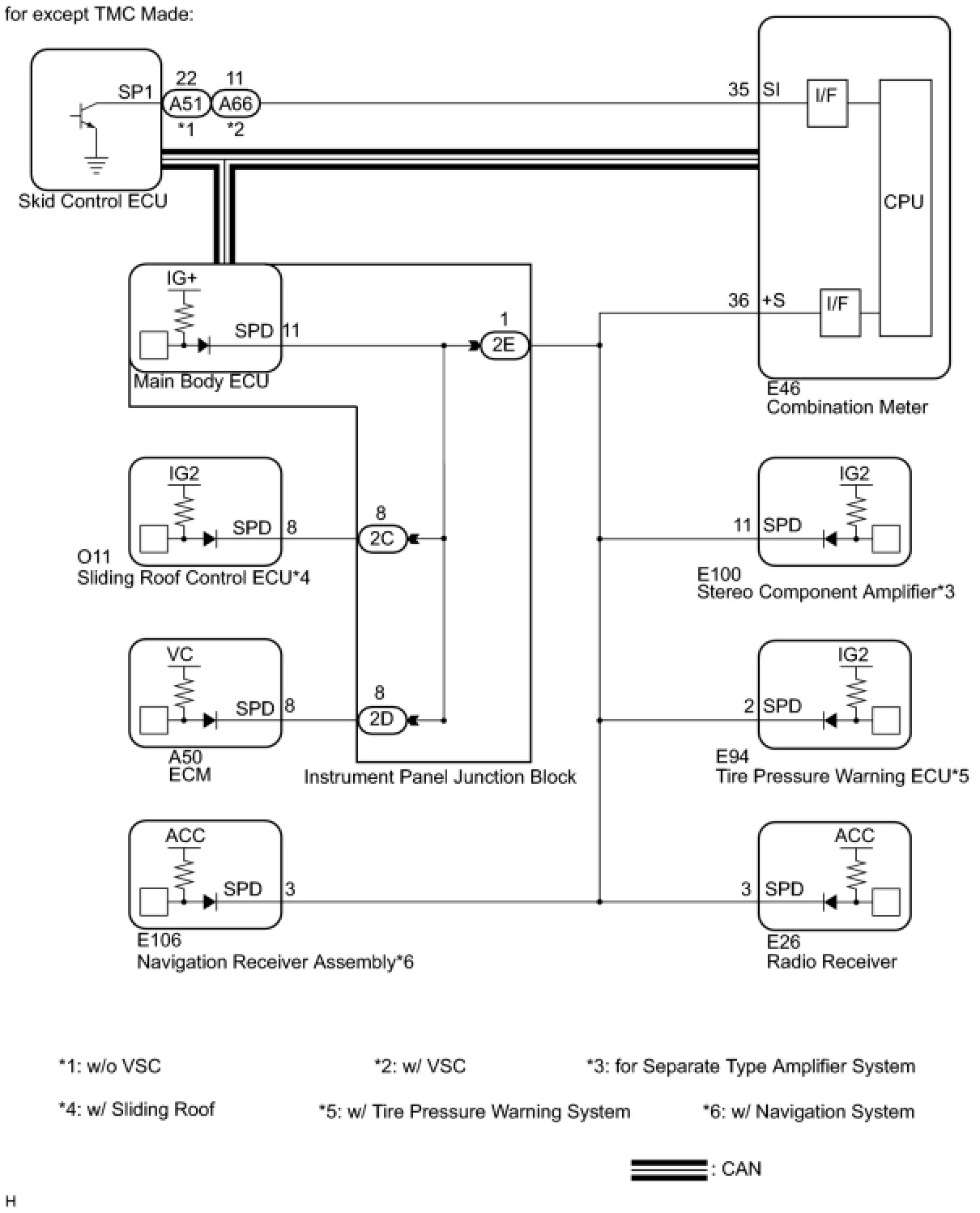 - A voltage of 12 V or 5 V is output from each ECU and then input to the combination meter. The signal is changed to a pulse signal at the transistor in the combination meter. Each ECU controls the respective system based on the pulse signal.