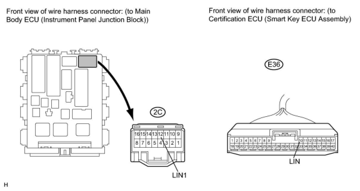 (a) Disconnect the E36 ECU and 2C junction block connectors.