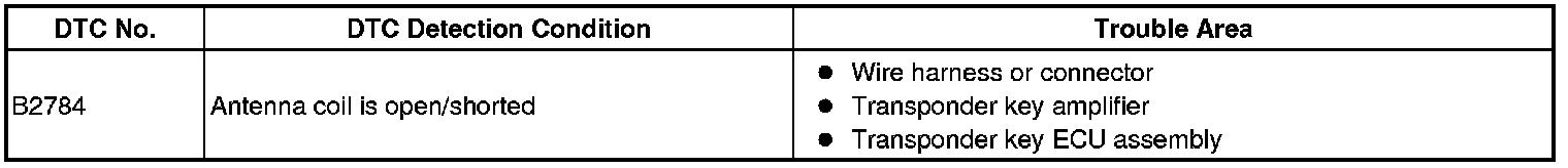 THEFT DETERRENT / KEYLESS ENTRY: ENGINE IMMOBILISER SYSTEM (w/o Smart Key System): B2784: Antenna Coil Open / Short