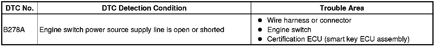 THEFT DETERRENT / KEYLESS ENTRY: ENGINE IMMOBILISER SYSTEM (w/ Smart Key System): B278A: Short to GND in Immobiliser System Power Source Circuit