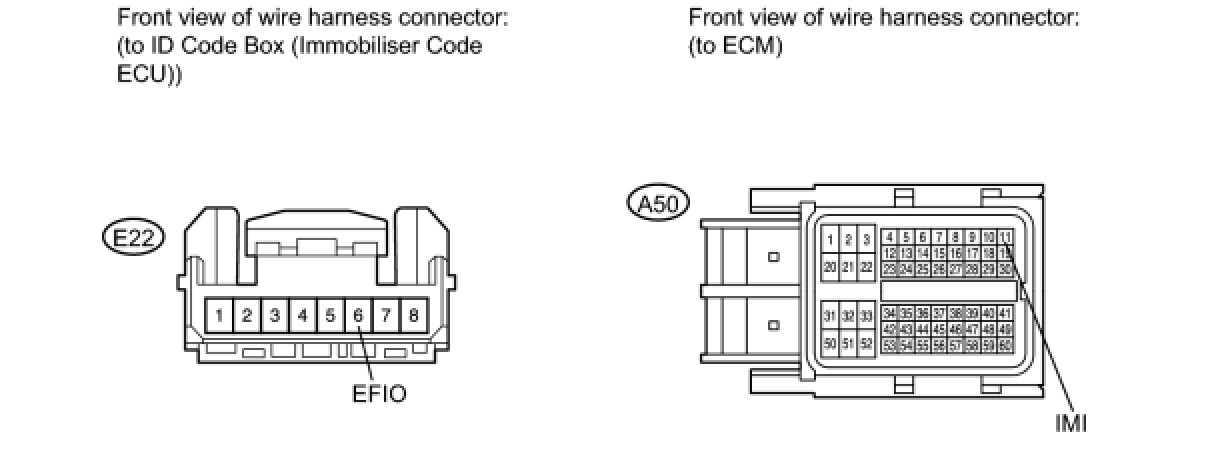 If the communication line (EFIO-IMI) to the ID code box (immobiliser code ECU) is stuck on HI output, the ECM outputs this DTC.