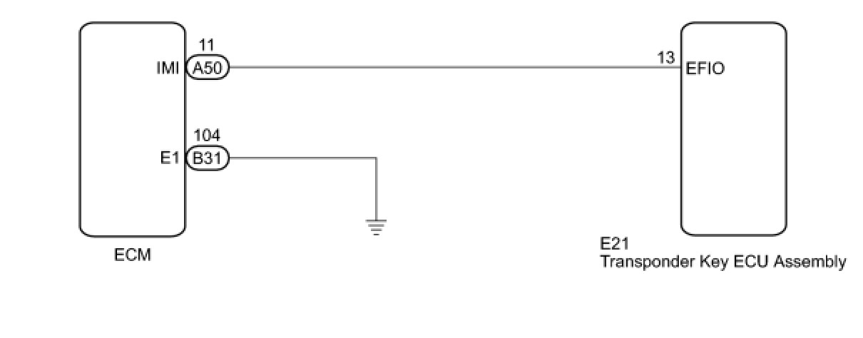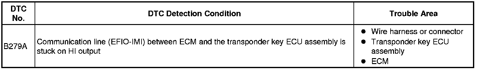 If the communication line (EFIO-IMI) to the transponder key ECU assembly is stuck on HI output, the ECM outputs this DTC.