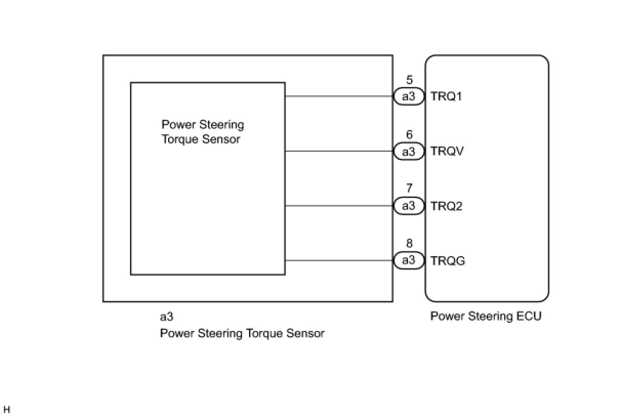 The power steering ECU calculates assisting power based on steering torque signals from the torque sensor. If these DTCs are stored in the power steering ECU, the ECU stops steering power assist as a fail-safe function.