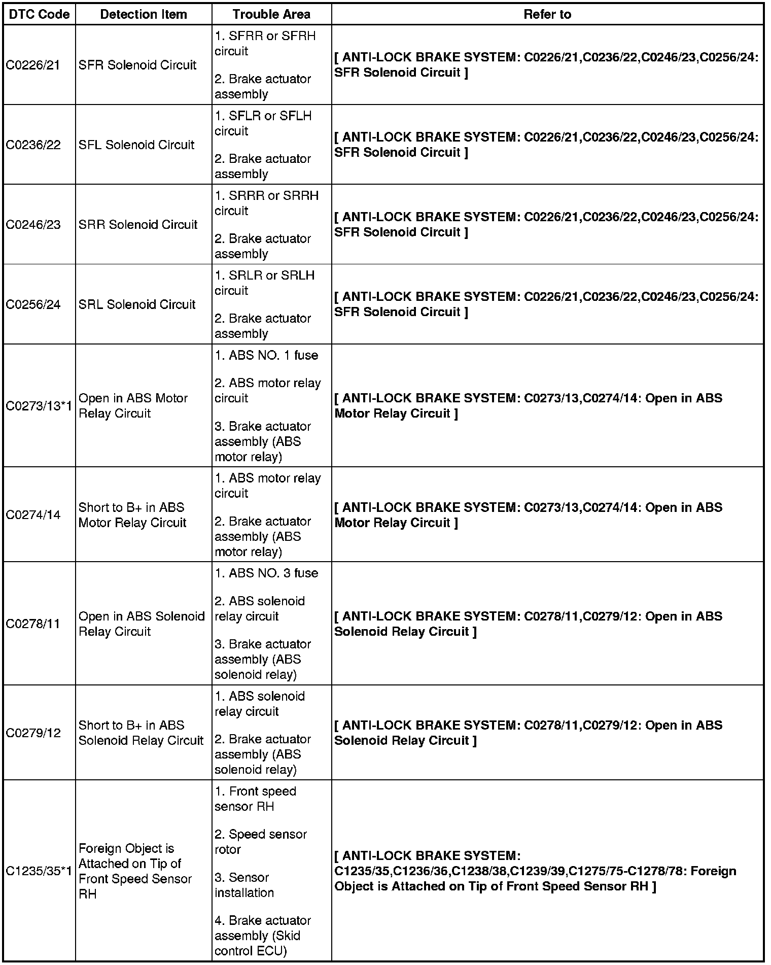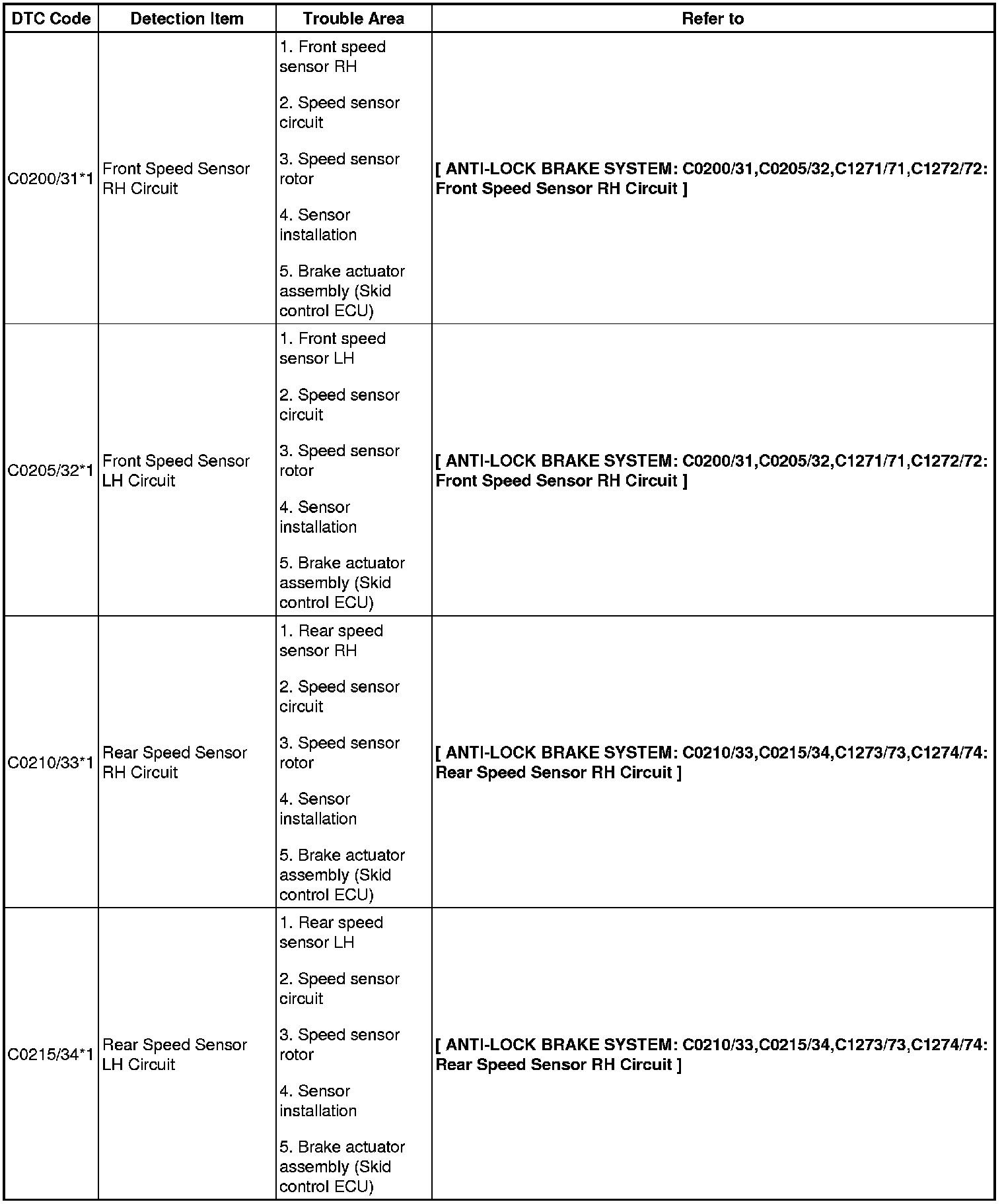 BRAKE CONTROL / DYNAMIC CONTROL SYSTEMS: ANTI-LOCK BRAKE SYSTEM: DIAGNOSTIC TROUBLE CODE CHART