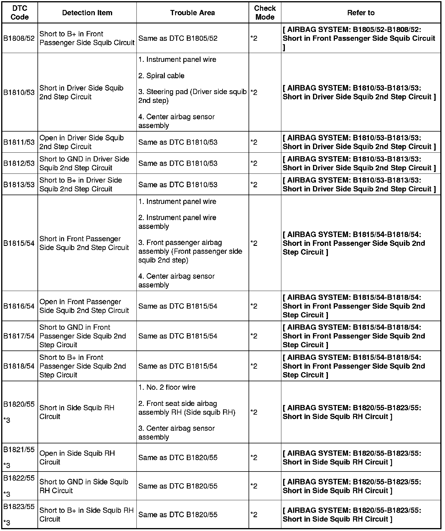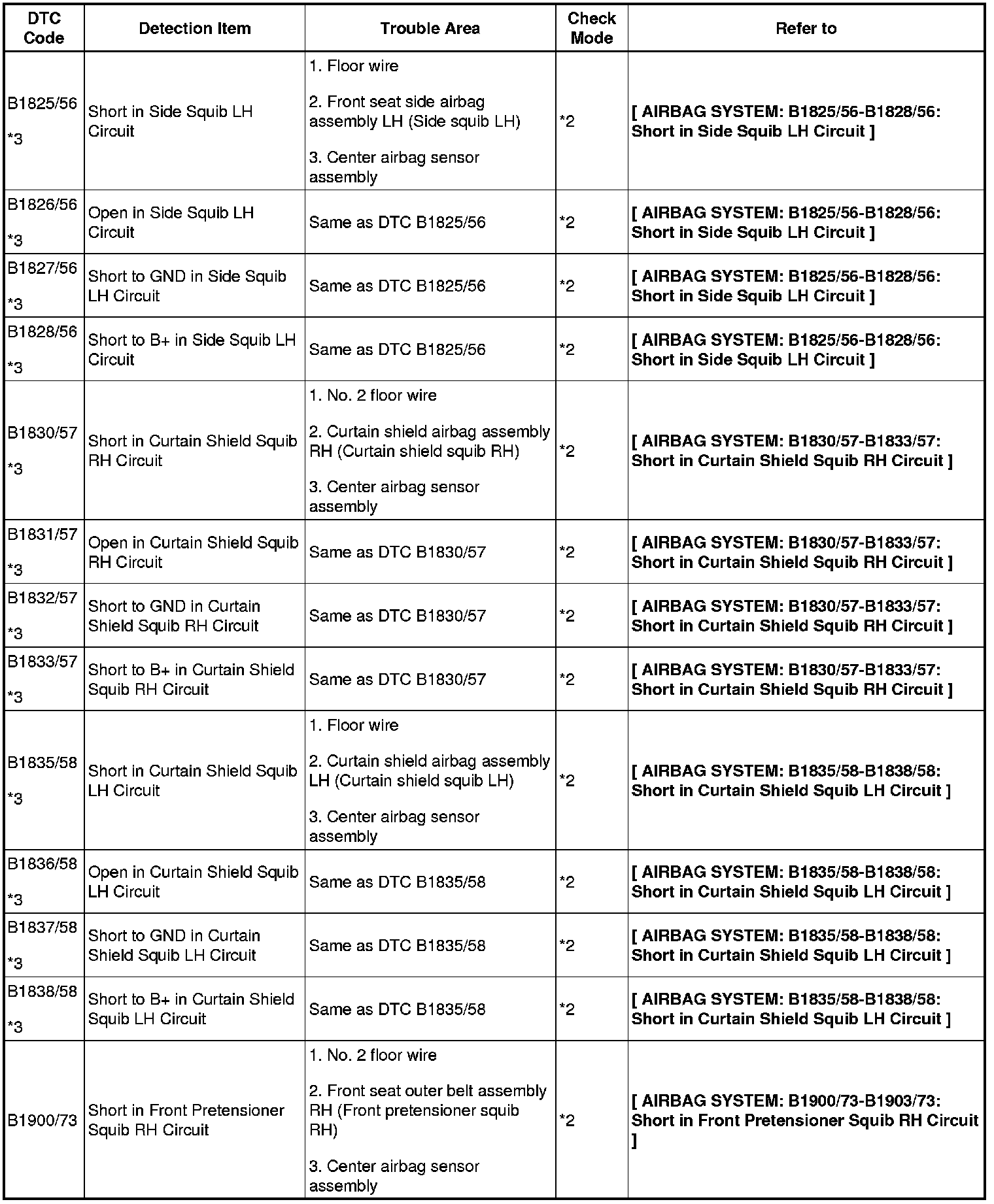 - DTCs marked *3 are output only on vehicles equipped with the front seat side airbags and curtain shield airbags.