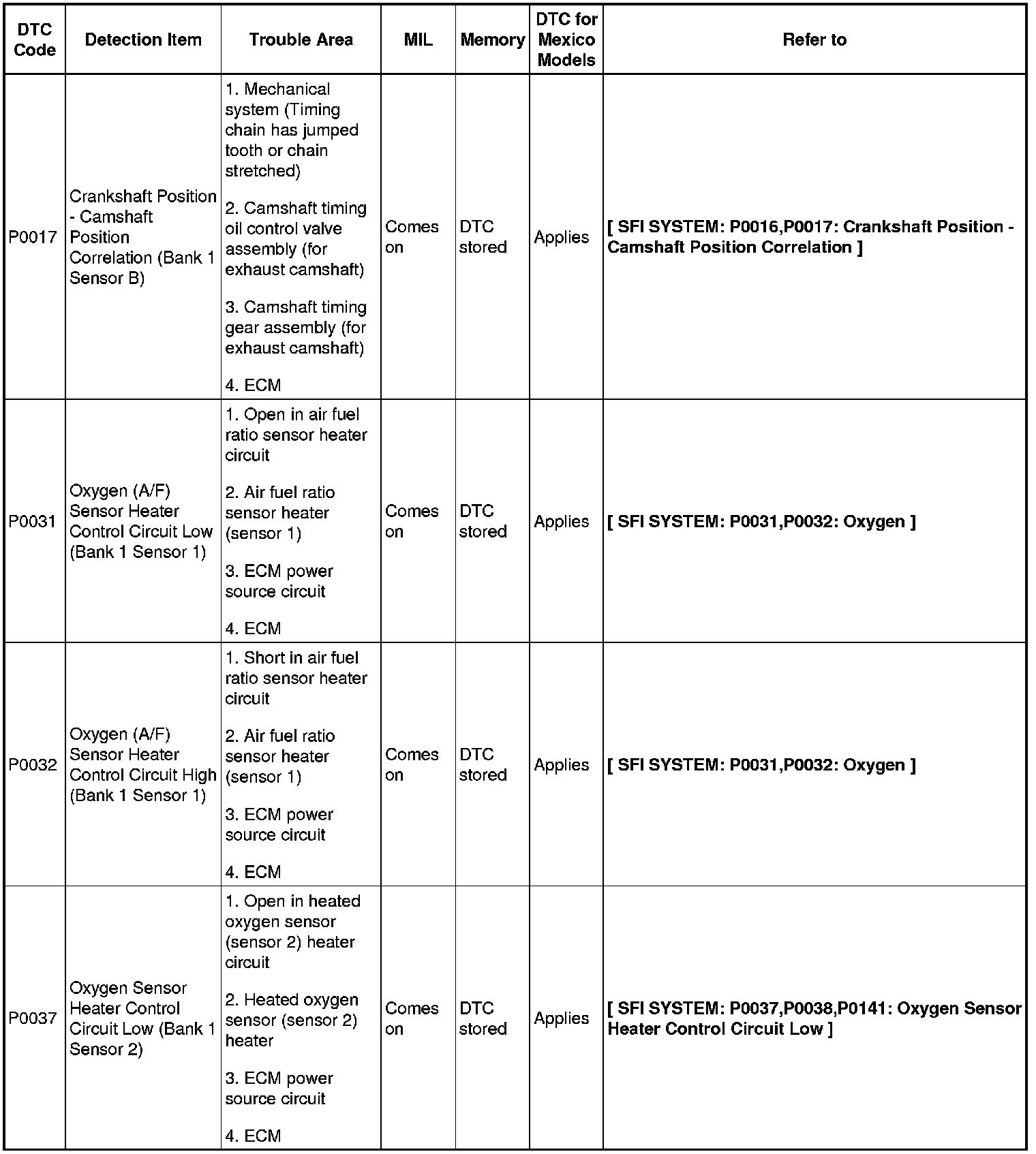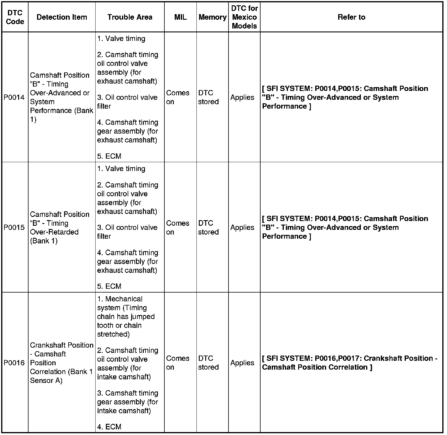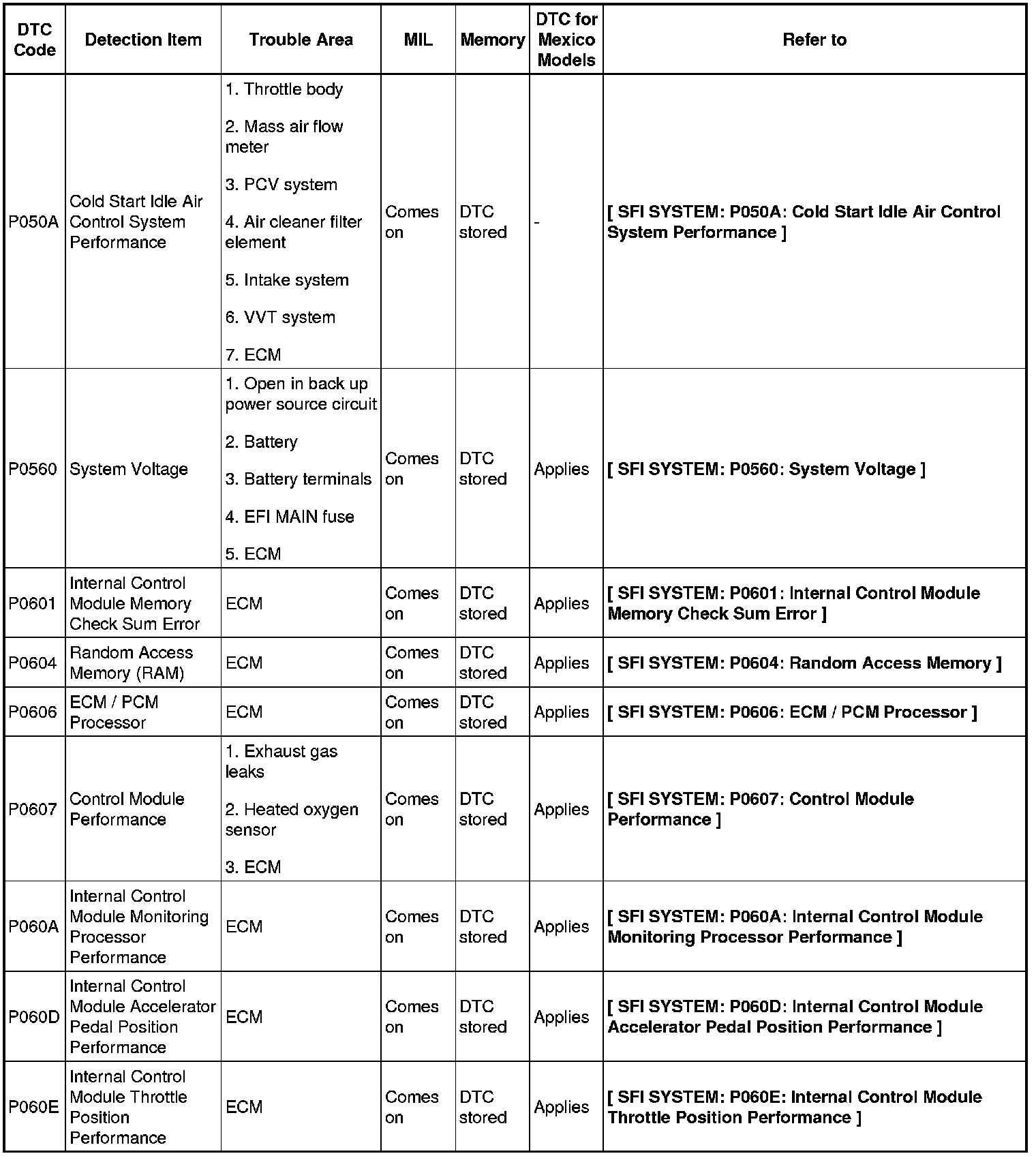 2ZR-FE ENGINE CONTROL: SFI SYSTEM: DIAGNOSTIC TROUBLE CODE CHART