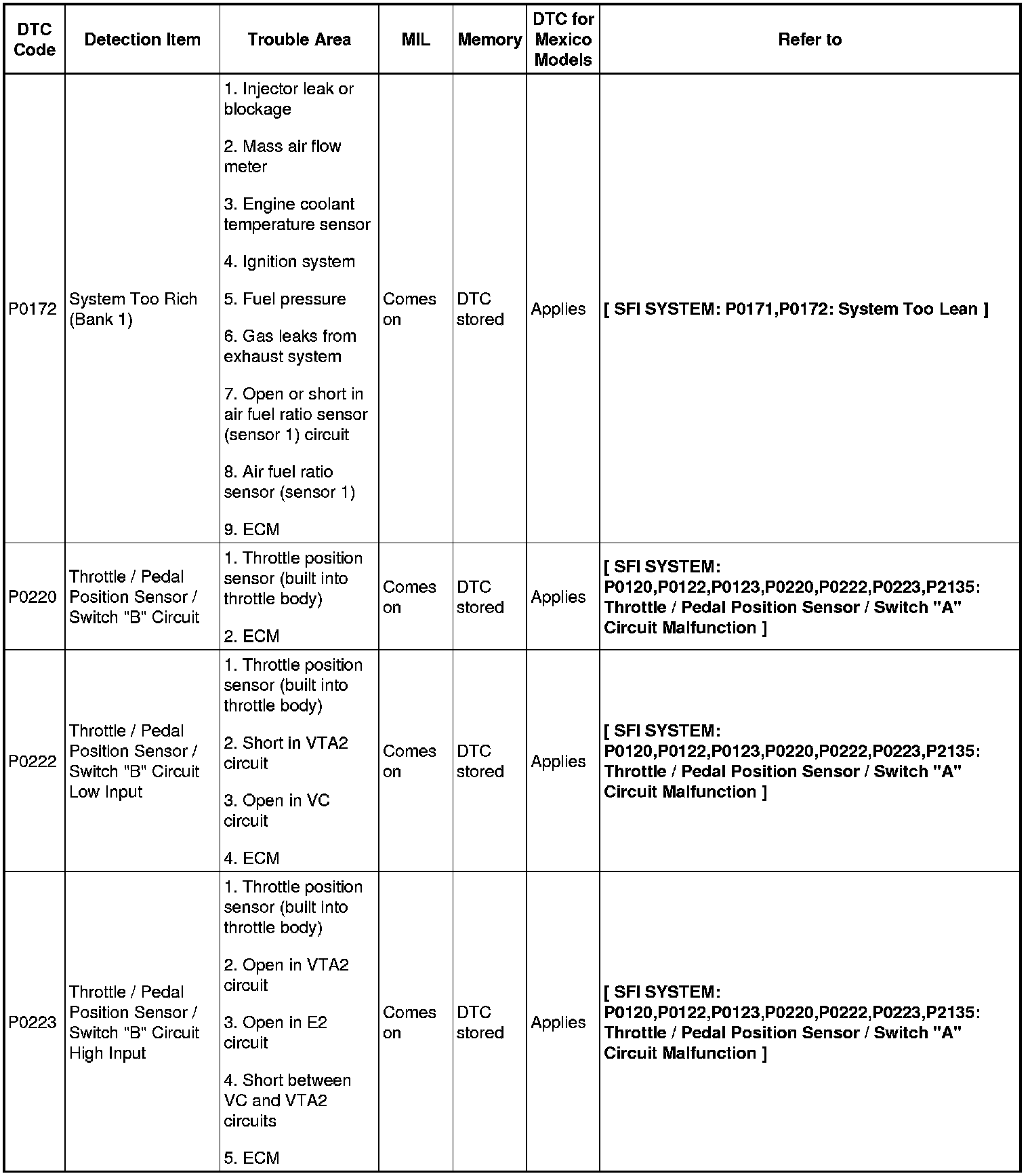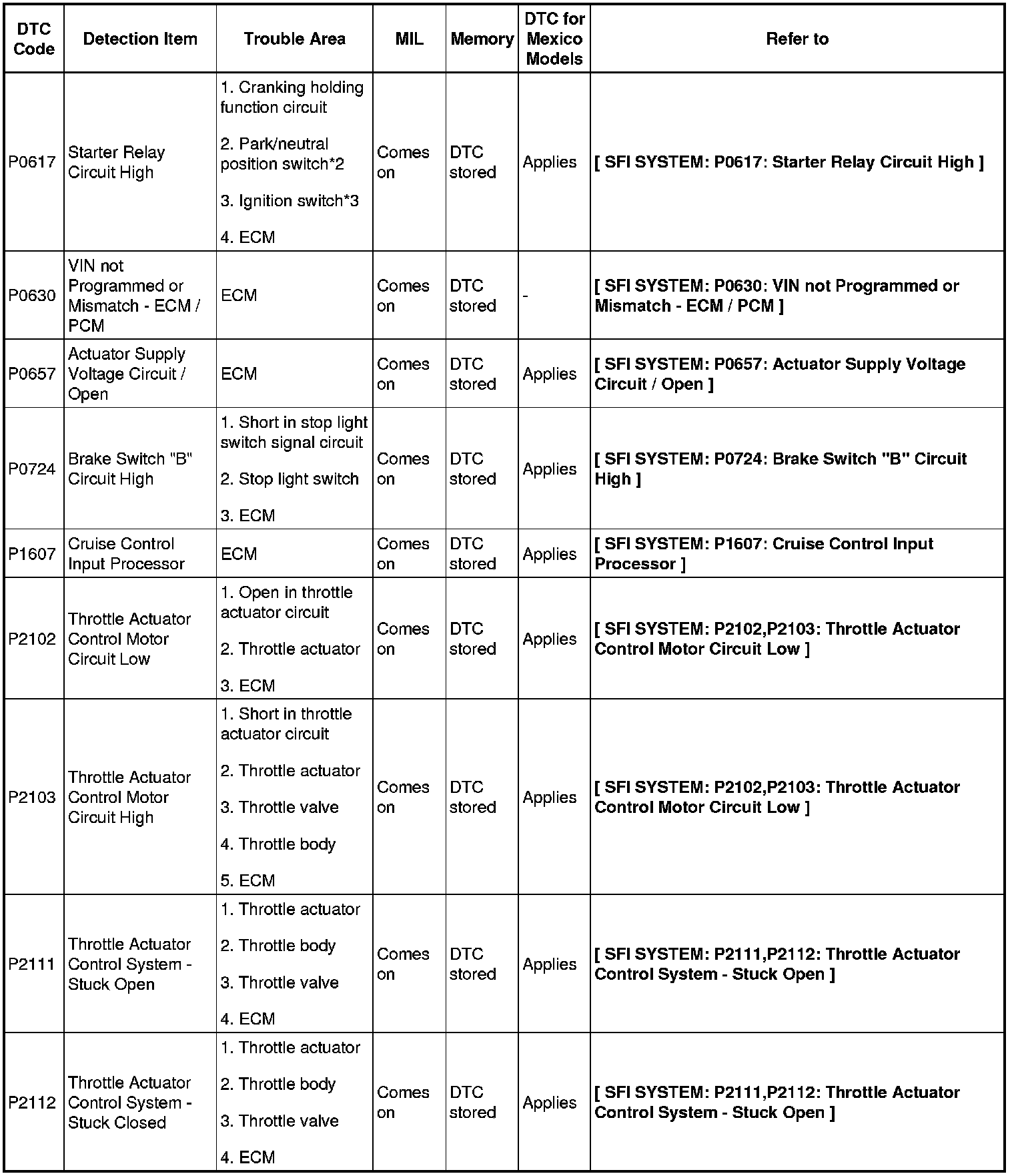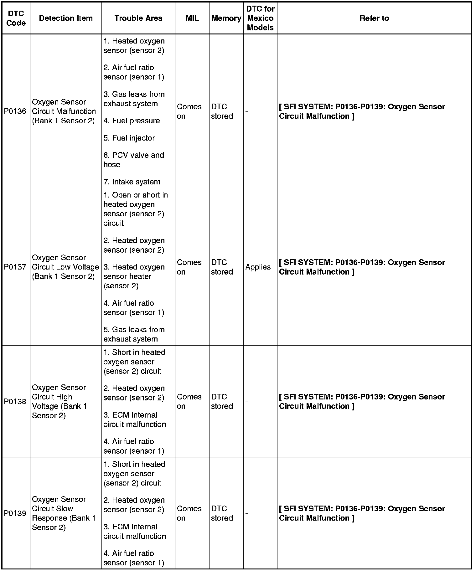2ZR-FE ENGINE CONTROL: SFI SYSTEM: DIAGNOSTIC TROUBLE CODE CHART