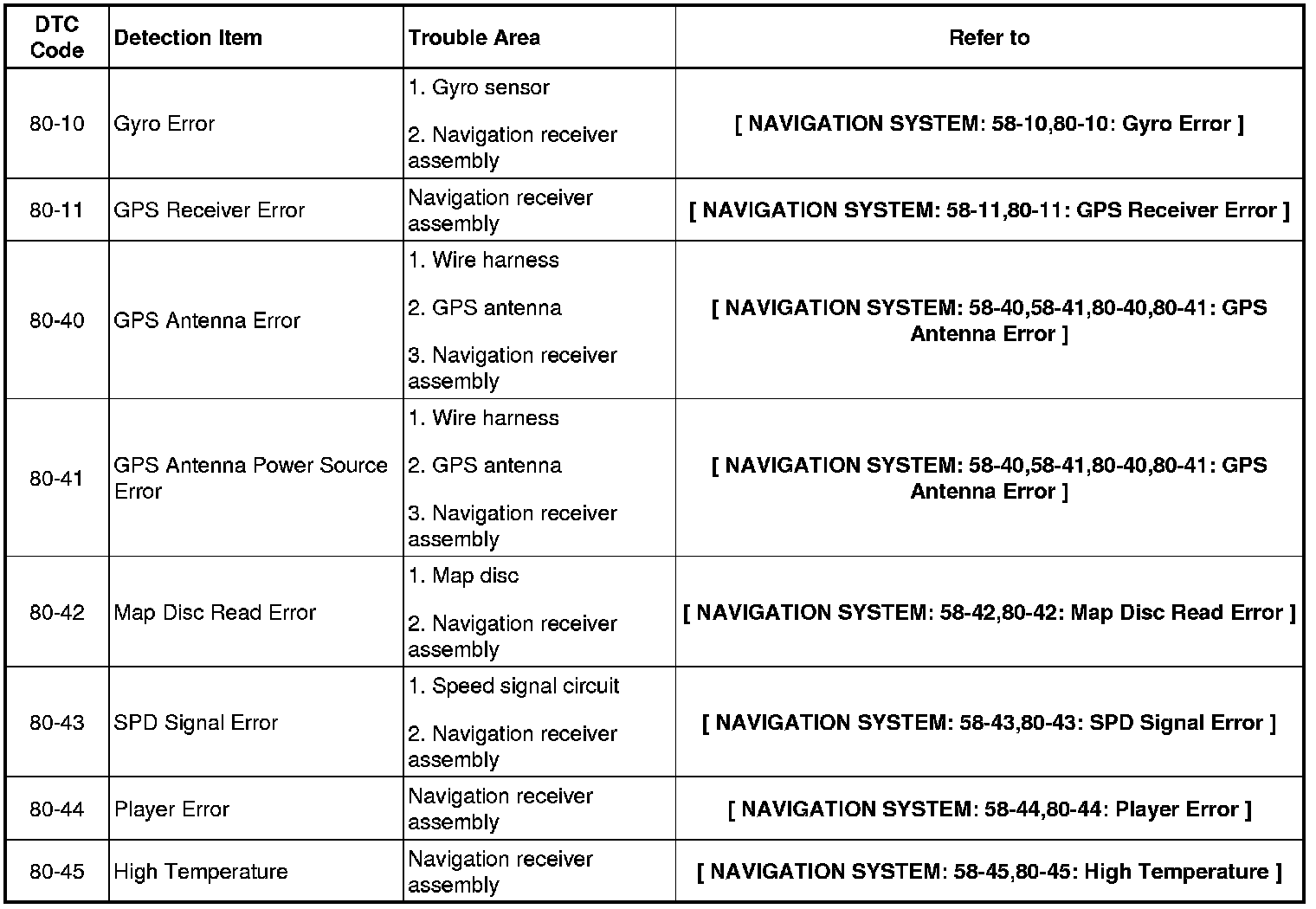 NAVIGATION / MULTI INFO DISPLAY: NAVIGATION SYSTEM: DIAGNOSTIC TROUBLE CODE CHART