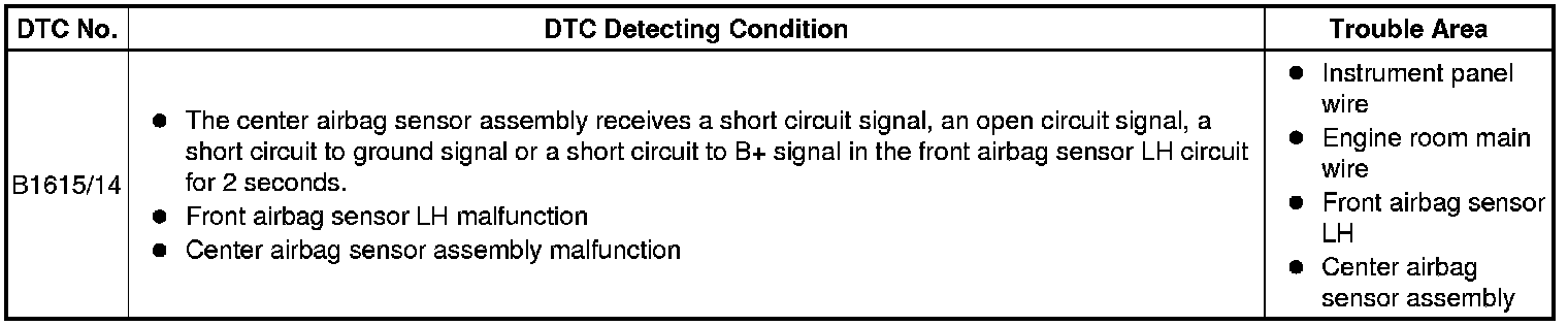 SUPPLEMENTAL RESTRAINT SYSTEMS: AIRBAG SYSTEM: B1615/14: Front Airbag Sensor LH Circuit Malfunction