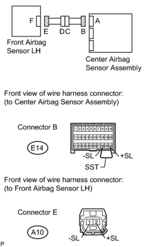 The front airbag sensor LH circuit consists of the center airbag sensor assembly and front airbag sensor LH.