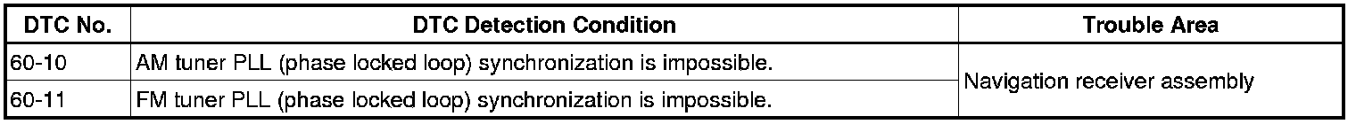 NAVIGATION / MULTI INFO DISPLAY: NAVIGATION SYSTEM: 60-10,60-11: AM Tuner PLL does not Lock